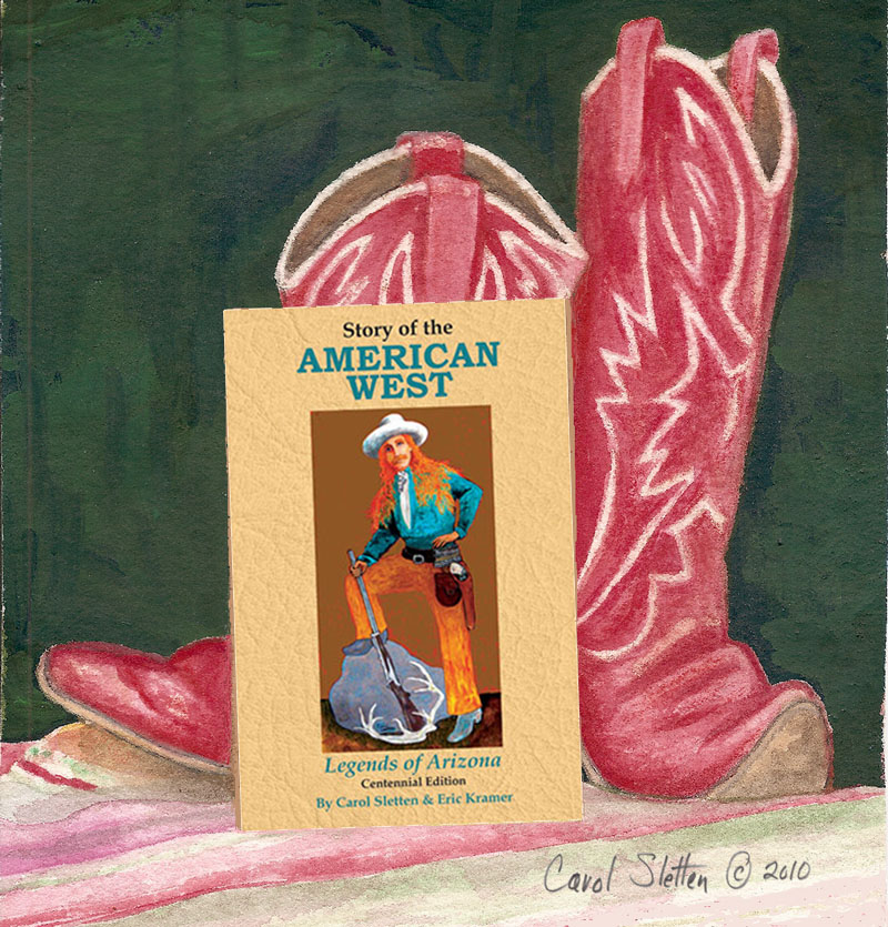 | Carol lives in a cabin in Arizona's White Mountains. She is currently focusing on the history, landscapes and people of the American West. Her popular play, books and artwork reflect her ongoing fascination with those subjects.